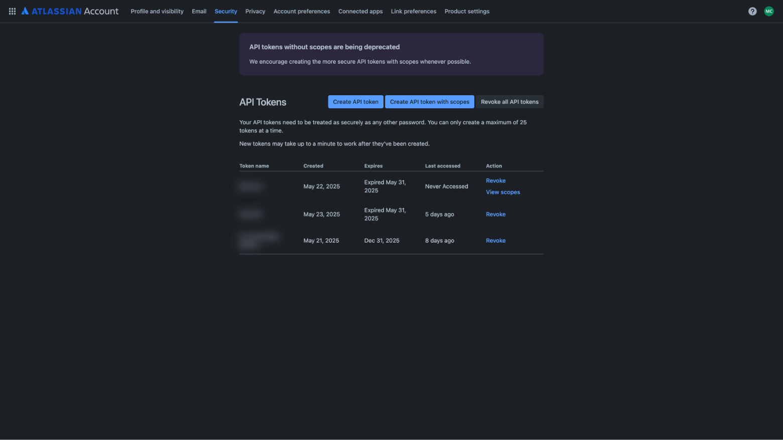 1. Create API Token on Atlassian Account : An Atlassian Administrator account is required.